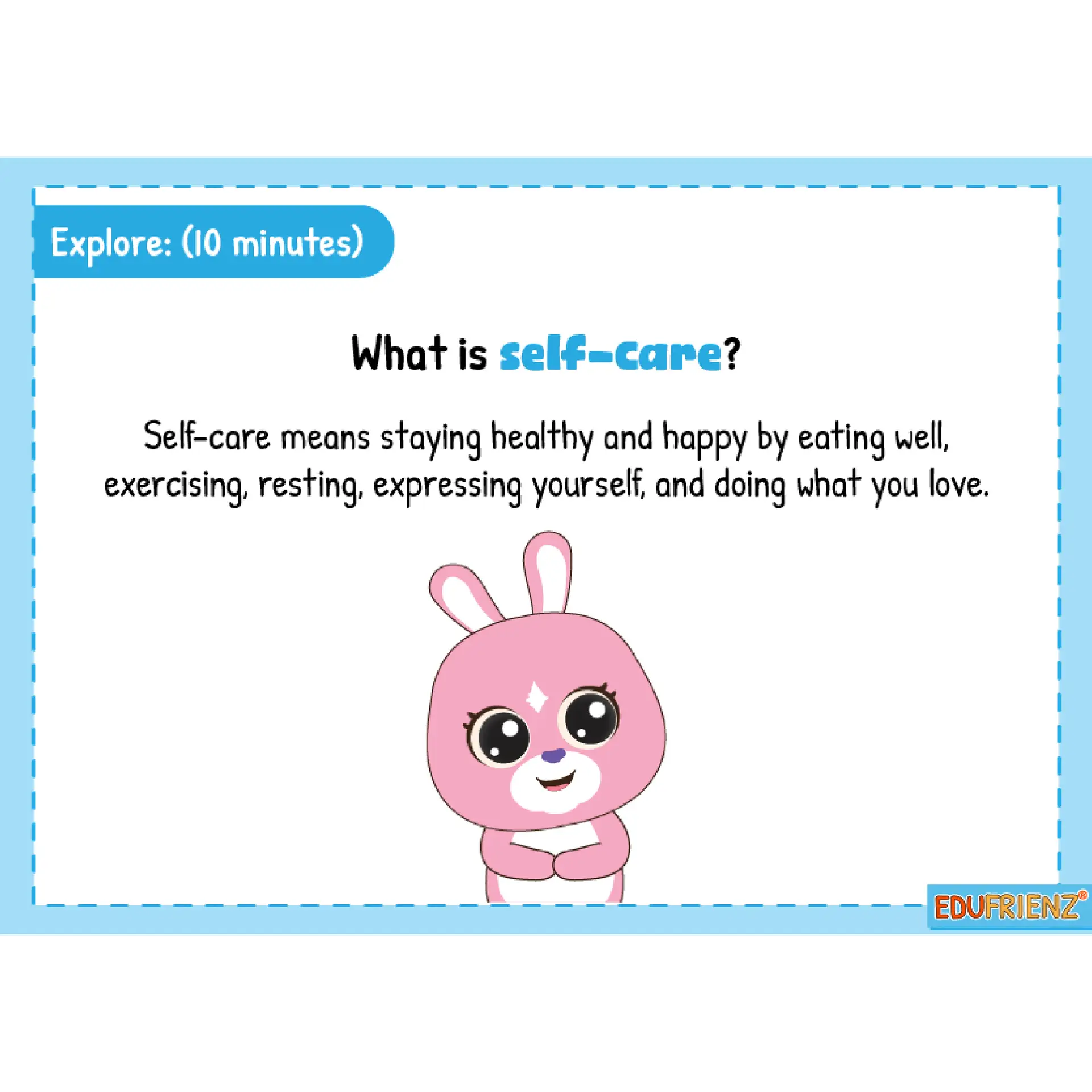 - Healthy Routines: Encourages daily practices of rest, hygiene, and mindfulness through the self care lesson plans.