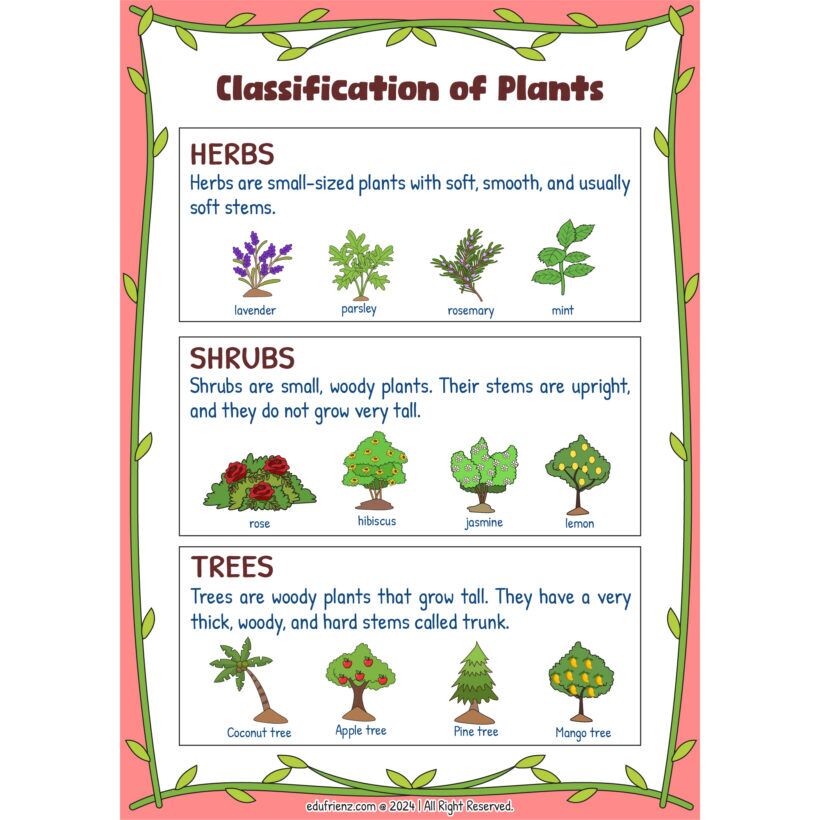 - Plant Categories: Discover how to classify plants such as herbs, trees, shrubs, climbers, and creepers.