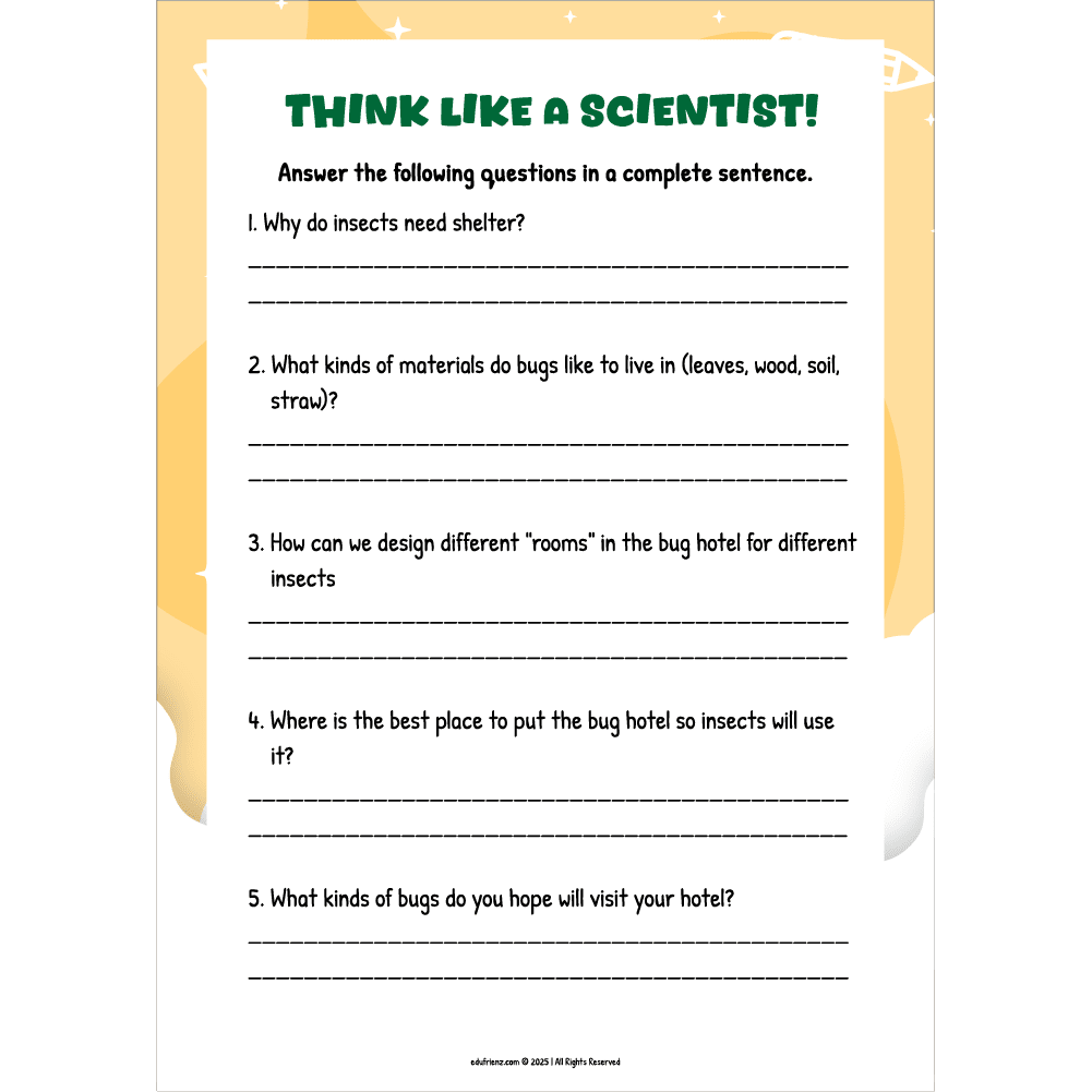 - Structured Scientific Observation: Promotes a detailed study of insect anatomy and habitats through guided STEM worksheets.