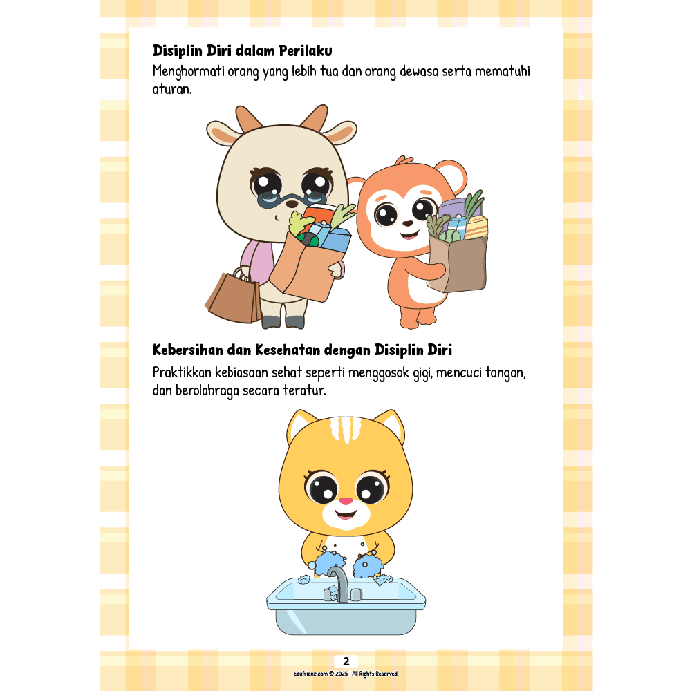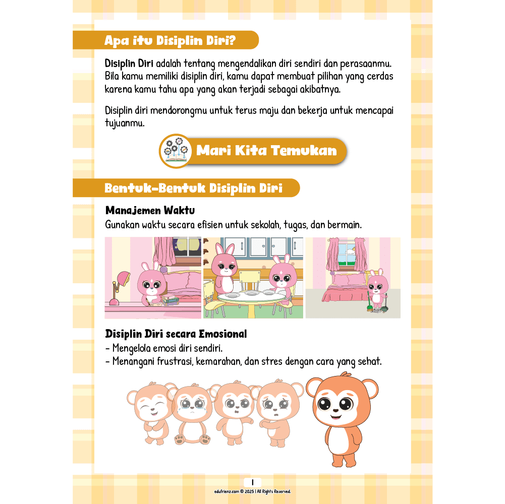 - Put it into Practice: Fun and interactive activities let children apply their learning to real-life situations. From creating daily schedules to identifying well-disciplined behaviors, these activities make learning stick! (English & Problem-Solving)